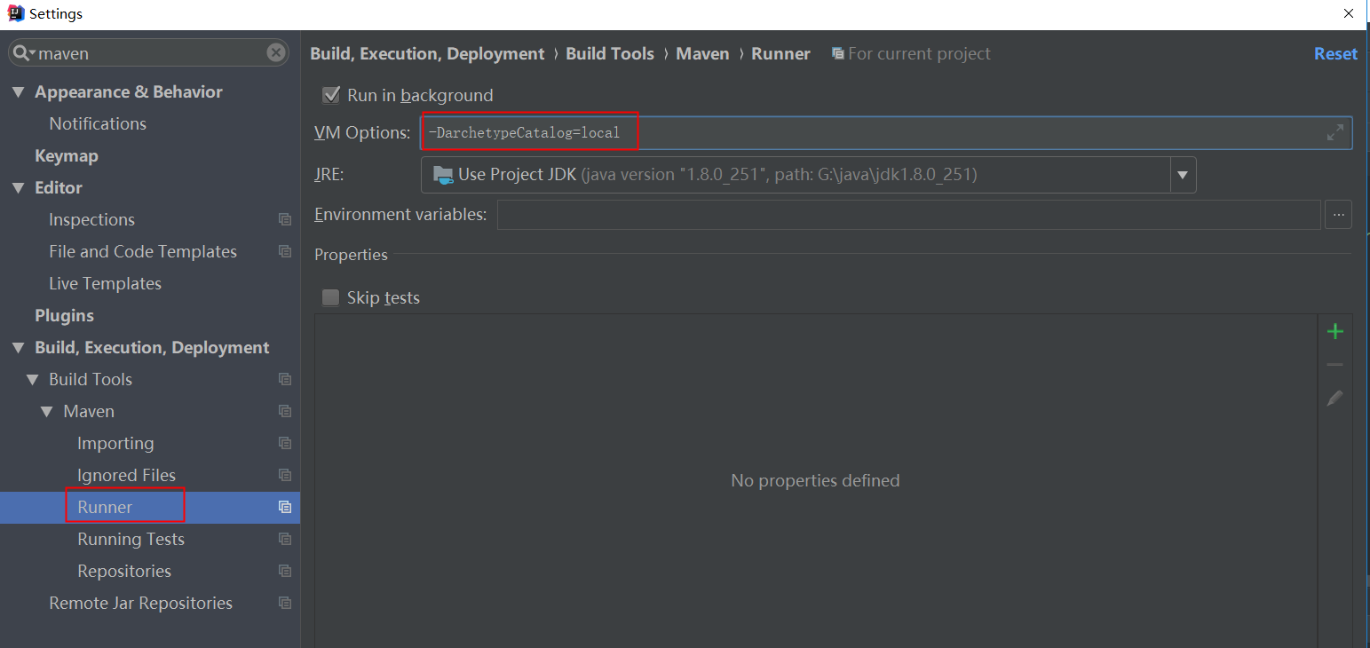 -DarchetypeCatalog=local这个参数。在 IDEA 中: