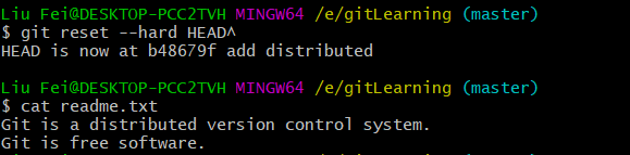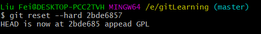 我们要把当前版本append GPL回退到上一个版本add distributed,就可以使用git reset命令:
