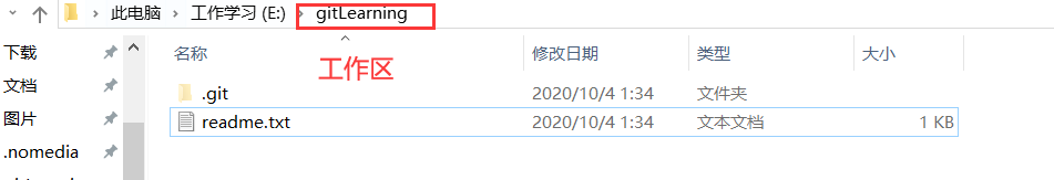 工作区有一个隐藏目录.git,这个不算工作区,而是Git的版本库。