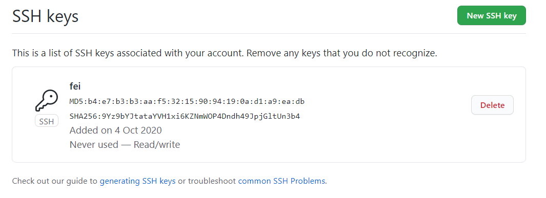.ssh目录,里面有id_rsa和id_rsa.pub两个文件,这两个就是SSH Key的秘钥对,id_rsa是私钥,不能泄露出去,id_rsa.pub是公钥,可以放心地告诉任何人.