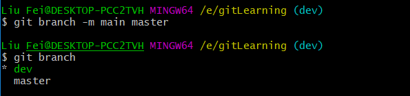 1 | git branch #查看所有分支,* 号代表当前工作分支 |