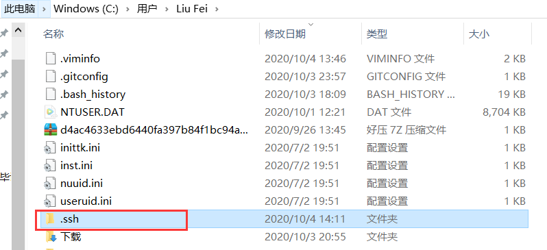 .ssh目录,里面有id_rsa和id_rsa.pub两个文件,这两个就是SSH Key的秘钥对,id_rsa是私钥,不能泄露出去,id_rsa.pub是公钥,可以放心地告诉任何人.