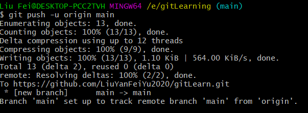 git push -u origin master第一次推送master分支的所有内容;此后,每次本地提交后,只要有必要,就可以使用命令